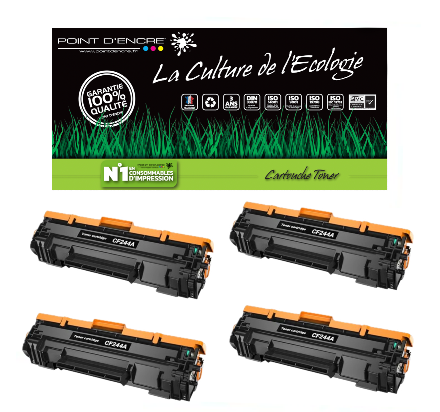 4 X CF244A/44A - Noir - Grande capacité Marque Francaise POINT D'ENCRE pour Imprimantes compatibles HP (clhp)