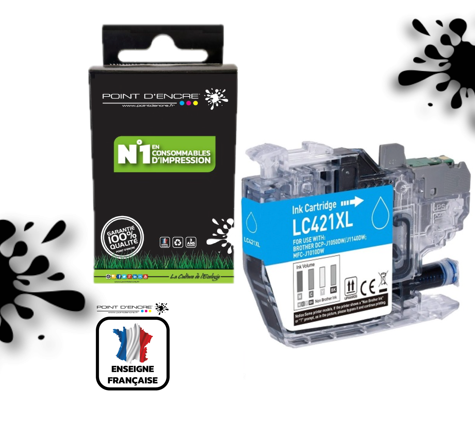 LC421XL - CYAN - Grande capacité de Marque Française POINT D'ENCRE Pour imprimante compatible BROTHER (ceb)