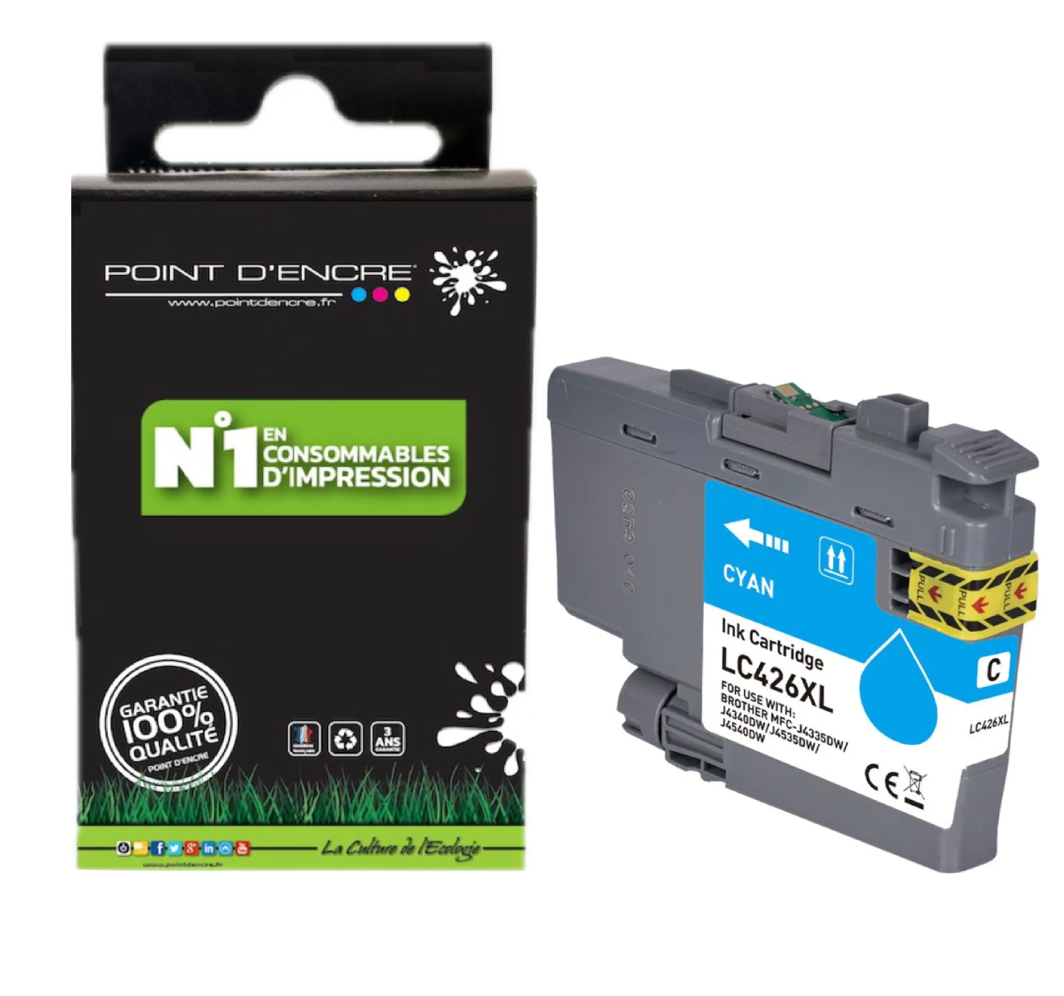 LC426XL - CYAN - Grande capacité de Marque Française POINT D'ENCRE Pour imprimante compatible BROTHER (ceb)